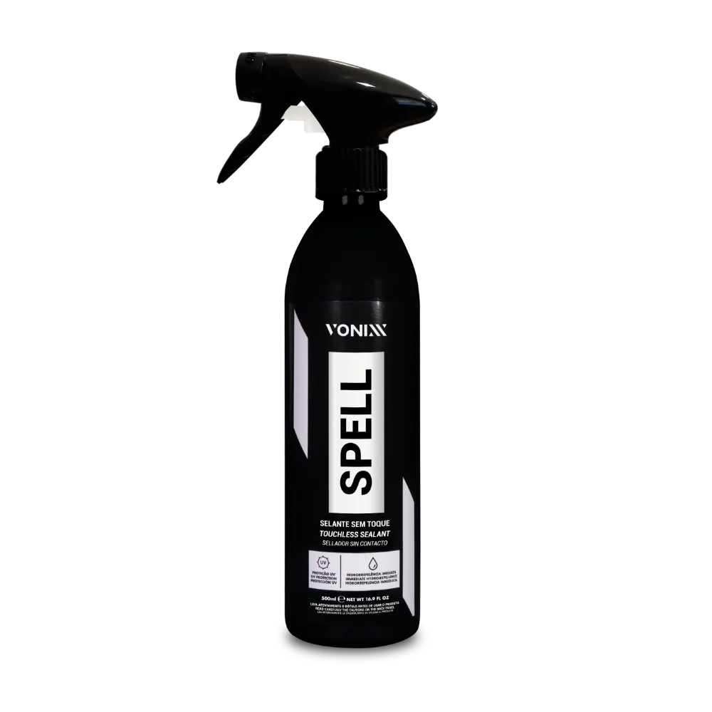 Spell é um selante sem toque, à base de sílica, que age imediato ao ser aplicado. Promove hidrorrepelência imediata, criando um filme de brilho e proteção UVA e UVB na pintura plástico, vidros e rodas.