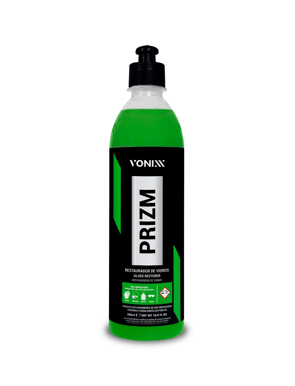 Prizm restaura a transparência em vidros automotivos remove marcas de água incrustadas, impurezas e contaminantes que não saem com a limpeza convencional. O produto age quimicamente contra as manchas e sujeiras, removendo-o facilmente de para-brisas, vidros laterais e traseiros.