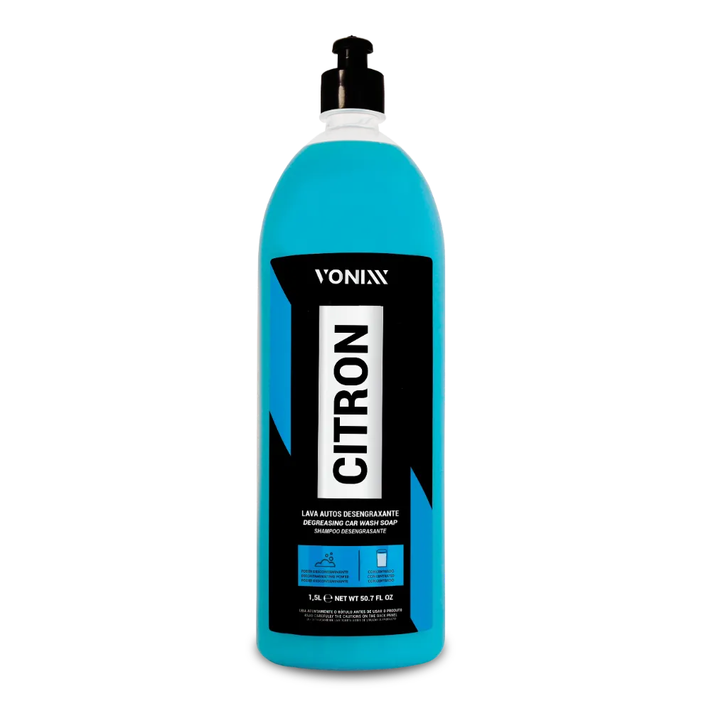 Citron é um lava autos desengraxante. Sua fórmula contém tensoativos especiais e solventes naturais extraídos de cascas de laranja. Citron é ideal para lavagem pesada de veículos, atuando na remoção de graxa, matéria orgânica e ceras, auxiliando na limpeza profunda da pintura do automóvel.